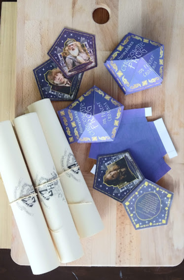 THESE Chocolate Covered Frog Boxes are also really fun. There are separate downloads for each character you want to print, and the name of the character is printed on the bottom the box.